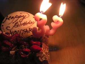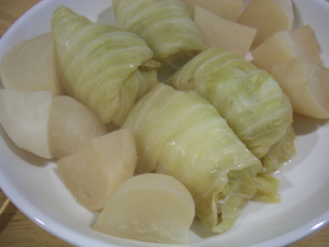 先日は旦那の誕生日でした♪ そんなわけでささやかながらもお祝いです♪ 考えた末にプレゼントはこの時期にちょうどよさげな上着を一枚。 後は手数で勝負!(笑)ってことで、何が食べたいか訊いてみたのですが… 旦那:「ロールキャベツ。」 ……え。(汗) そんな普通っぽいのでいいの?!と思いつつ、本人が食べたいなら まぁそれでいいかとロールキャベツでお祝いです。(笑) 薄味のがいいみたいなのでカブと一緒にコンソメ味。 流石にロールキャベツだけじゃ地味だなーと、ラザニアとサラダ。 サラダはチコリにのせて食べる風にしてみたのだけど… なんだか、誕生日ディナーにしては地味なことになってしまった…(汗) 喜んでたみたいだし、これでいい…の、か、な…?(苦笑) 誕生日っていったらケーキ!ってことで、 お腹いっぱいだーと叫びながら、とりあえずは出してみた。 ちゃんとロウソクもつけたよ!(笑) このロウソク、可愛いと思うんだ。 えぇ、旦那は33歳になったようです。 無理!入らない!と途中でギブした私に対し、結局その場で 自分の分を食べきった旦那は、その後腹筋をさぼってました。(苦笑) 来年も二人揃って元気に誕生日できるとよいね。 PR 忍者ブログ | [PR]