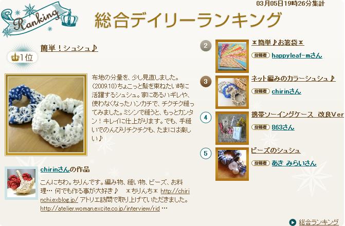 主催元から詳細について連絡があったのでお知らせです! PR サテンのヘアバンドの発展版…?(笑) 作ってみたら思っていた以上に綺麗だったシリーズ品。 売れ行きを見てもういくつか作ってみてもいいかも♪ アトリエとCharmに投稿してみました。 http://atelier.woman.excite.co.jp/creation/12336.html http://www.charm-charm.jp/craft/1693.html アトリエの方でランキング貰っちゃいました♪5番目~! 忍者ブログ | [PR]